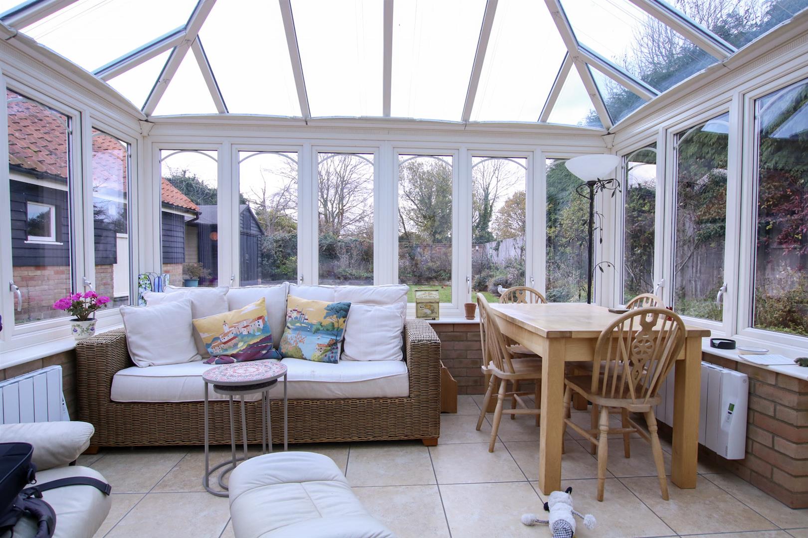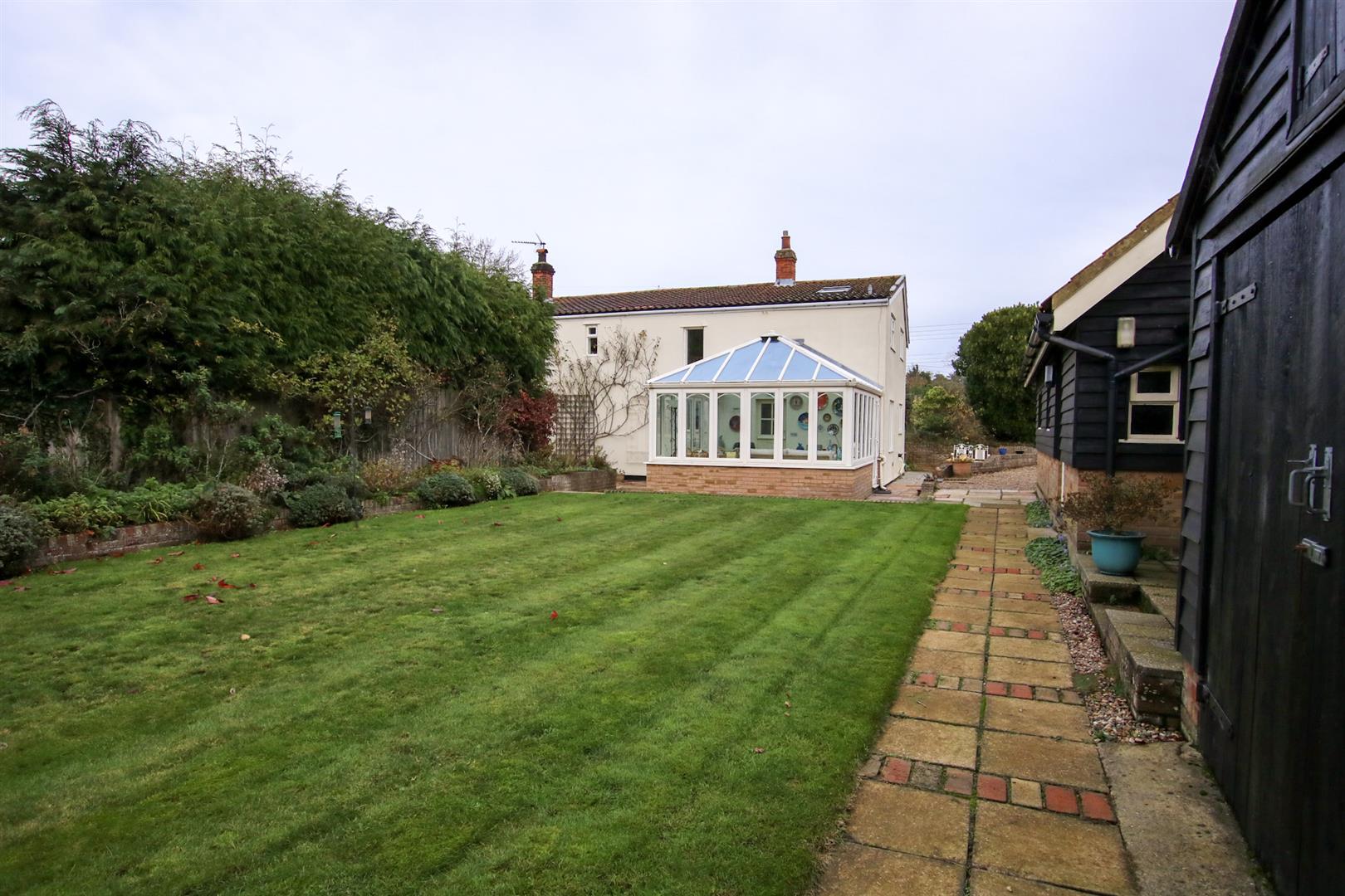Charming Period Cottage set within delightful private gardens in a peaceful location in the popular village of Knodishall, which still retains its village store and post office as well as a public house, motor repair garage and primary school, lies about one mile south of the busy town of Leiston with its traditional high street shops, supermarket, doctors and dentists surgeries, leisure centre and swimming pool complex and cinema. The Suffolk Heritage Coastline lies within a very short drive at nearby Thorpeness with is popular ‘Meare’ boating lake and a long shingle beach fronting the North Sea whilst the unspoilt town of Aldeburgh is only about four miles distant. the area is very popular with holiday makers, the National Trust nature reserves, RSPB Minsmere bird sanctuary and the Sanderlings Heath drawing visitors from across the country. The market town of Saxmundham, with its good shopping facilities lies about four miles to the west and offers good access to the A12 Ipswich to Great Yarmouth road and also has a railway station giving hourly services to London Liverpool Street via Ipswich.